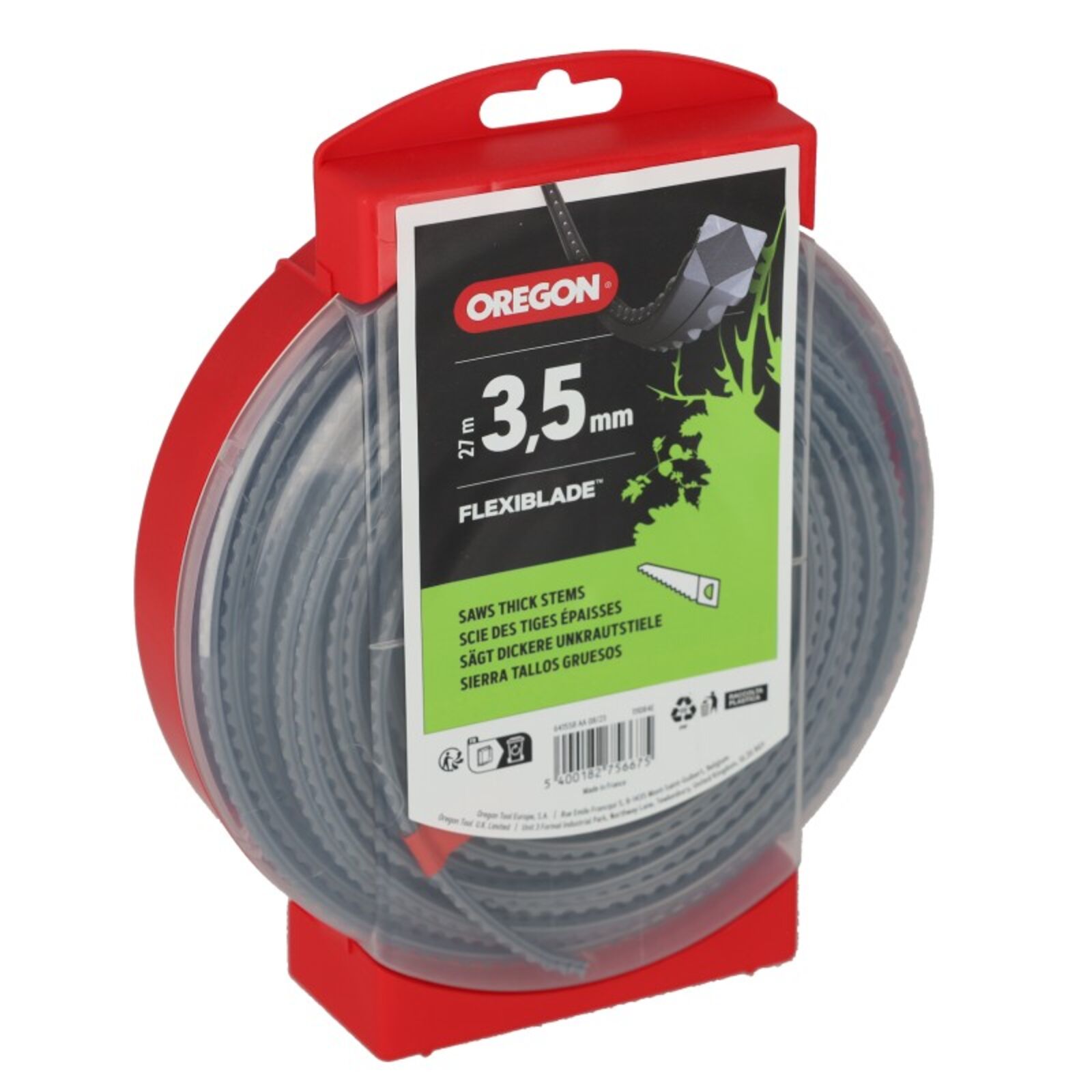 Oregon gyártmányú Flexiblade típusú damil, 27 méteres, 3.5 mm átmérőjű, szögletes, fogazott profilú.