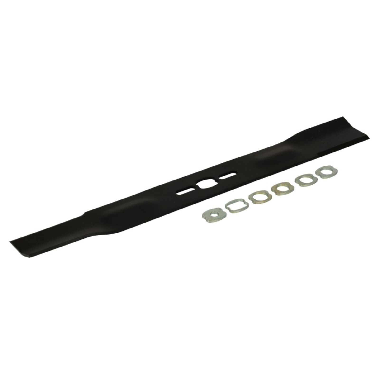 Univerzális, egyenes fűnyírókés, 5 darab különböző méretű szűkítő betétgyűrűvel.