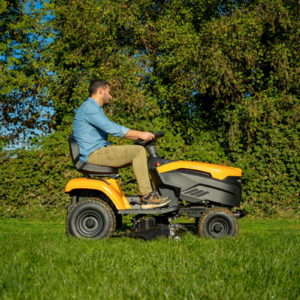 A STIGA Tornado 398e egy nagy teljesítményű, elektromos meghajtású, oldalkidobós fűnyíró traktor,